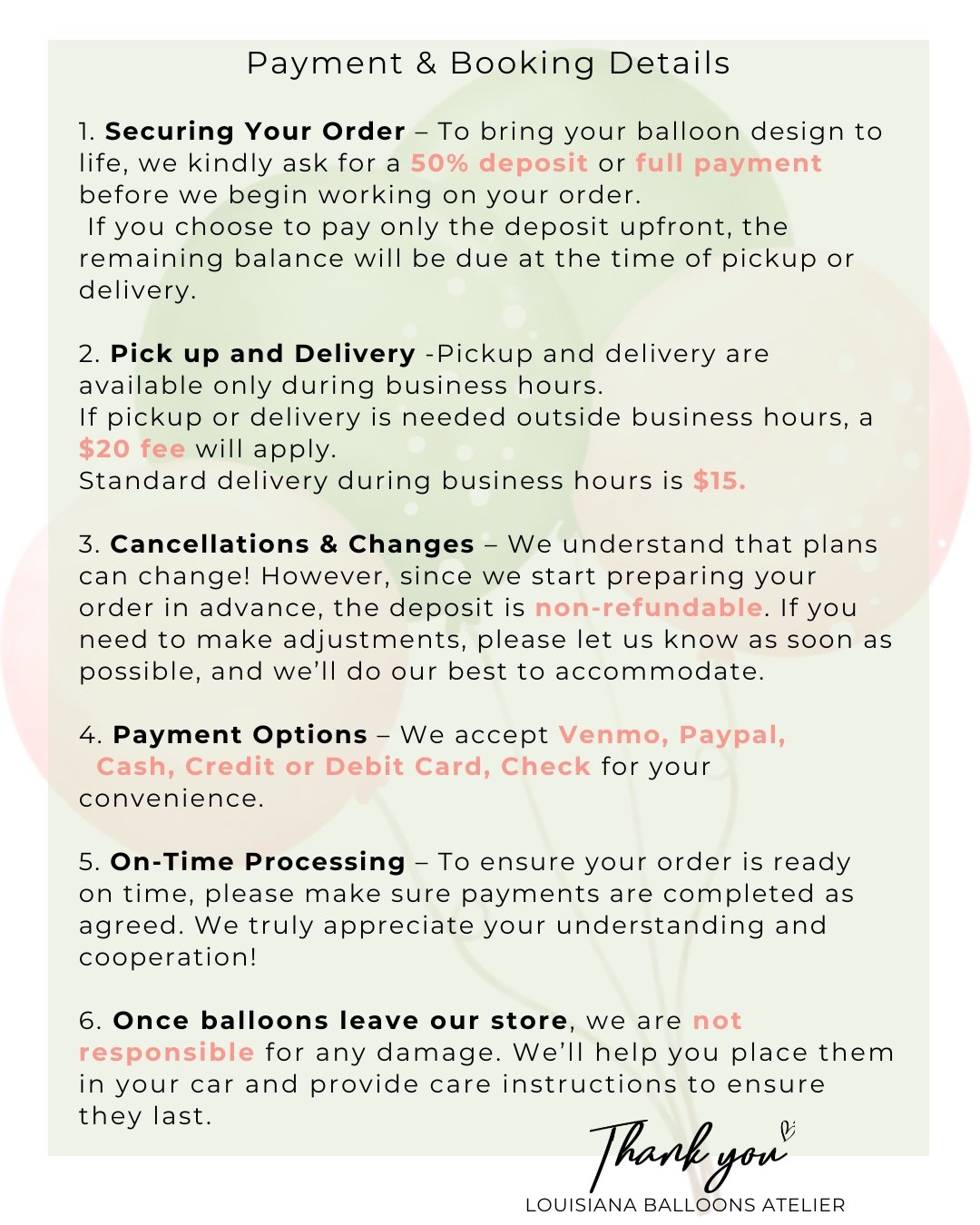 At Louisiana Balloons Atelier, we don’t just decorate — we create unforgettable experiences, turning every celebration into a magical moment, one balloon at a time.
